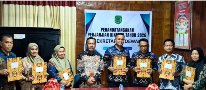 Luwu Utara, batarapos.com – Sekretariat Dewan Perwakilan Rakyat Daerah (Sekwan) Kabupaten Luwu Utara Ednan Juni Rum, melakukan penandatanganan perjanjian kinerja kepada pejabat struktural dan fungsional di Ruang Rapat Sekwan, Kamis (2/4/2026).