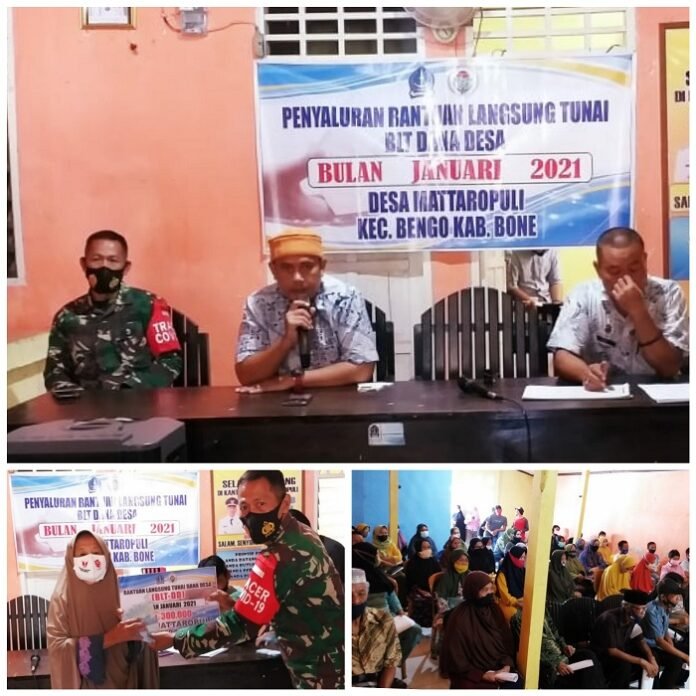 Sedikitnya terdapat 85 peserta KPM Desa Mattaropuli mendapatkan bantuan langsung tunai tahap pertama bulan januari tahun 2021. Dimana, masing-masing KPM mendapatkan uang tuani senilai Rp. 300.000