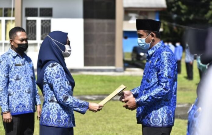Prosesi penyerahan SK PPPK dilakukan dengan protokol kesehatan yang ketat.