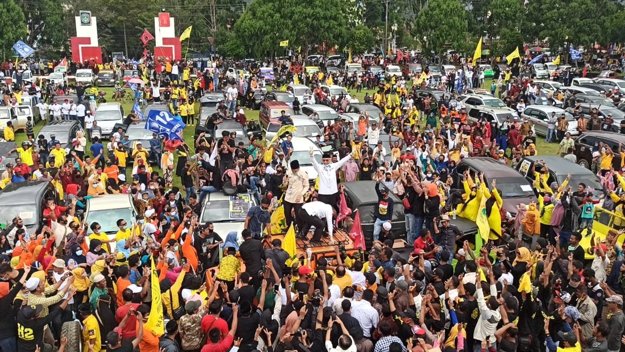 Jum’at 04/09/2020, lapangan Merdeka Malili penuh sesak, bahkan tampak jadi lautan manusia, hal ini diakibatkan pendukung husler budiman yang berkumpul ingin menyaksikan langsung proses pendaftaran husler budiman ke kantor KPU luwu timur.