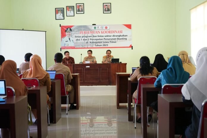Luwu Timur, batarapos.com – Dalam rangka pelaksanaan rencana aksi penurunan stunting, Pemerintah Kabupaten Luwu Timur (Lutim) melalui Badan Perencanaan Penelitian dan Pengembangan Daerah (Bapelitbangda) menggelar Rapat Koordinasi (Rakor) Lintas Program dan Lintas Sektor, di Aula Bapelitbangda, Senin (27/03/2023).