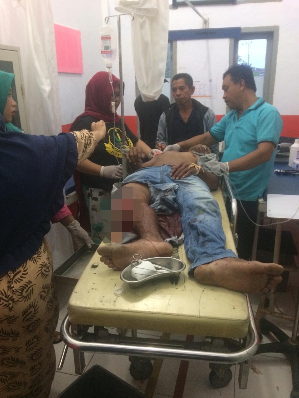 Kendaran korban Yamaha Vixion warna biru tanpa nomor polisi terpental kekiri dan korban jatuh ke sungai bawah jembatan mengakibatkan korban patah kaki di bagian lutut, serta bahu kanan patah.