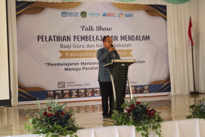Luwu Timur, batarapos.com – Peserta Pelatihan Pembelajaran Mendalam bagi Guru Luwu Timur Batch 1 mengadakan Talkshow di Aula Dinas Pendidikan dan Kebudayaan Luwu Timur, Kamis 6 November 2025.