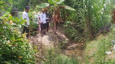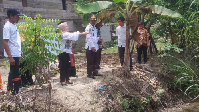 Heryanti Harun didampingi Bidang Perencanaan Bapelitbangda, Kepala Desa Madani dan masyarakat, meninjau langsung saluran pembuangan yang berada ditengah permukiman warga di Desa Madani, Rabu (4/11).