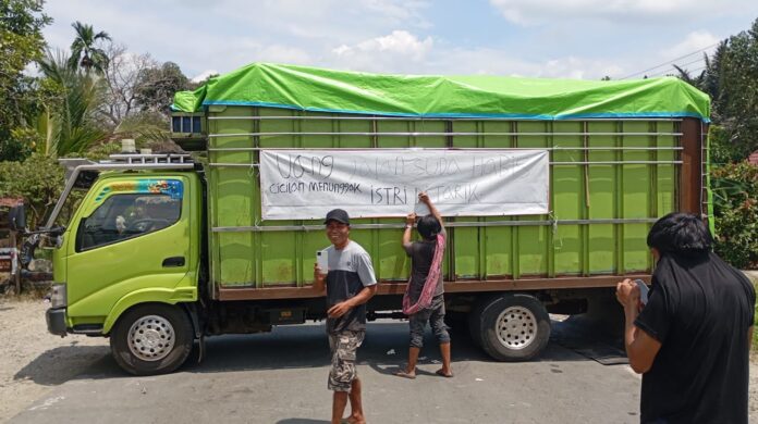 “ Kami sudah satu minggu di sini. Tidak apa-apa kami satu minggu di sini, tapi mobil kecil juga harus tidak boleh lewat, ” ucap salah satu sopir saat berorasi di lokasi.