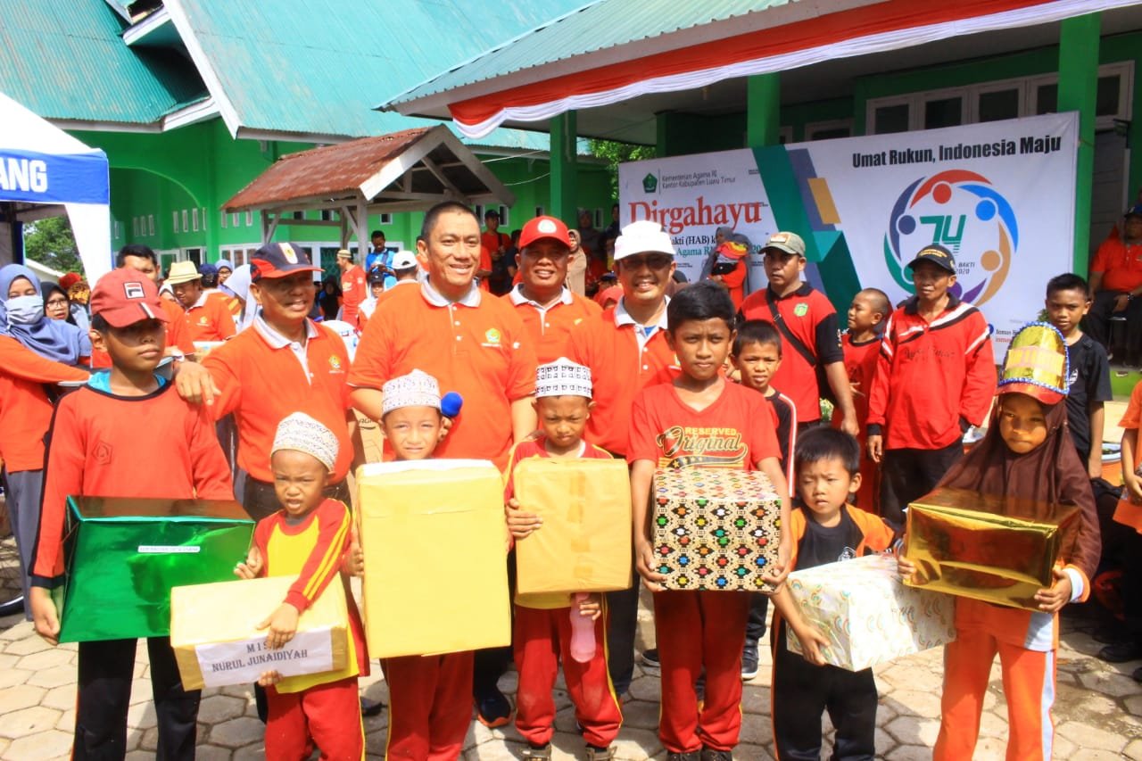 Jalan santai kerukunan ini masih dalam rangkaian peringatan Hari Amal Bakti ke-74 Tahun 2020 yang bertemakan “Umat Rukun, Indonesia Maju”. Sejumlah doorprize seperti sepeda, kulkas, mesin cuci, kipas angin dan berbagai hadiah hiburan lainnya disiapkan panitia. Jalan santai mengambil start di Lapangan Merdeka Malili dan Finis di Kantor Kemenag Lutim.