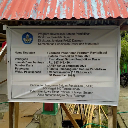 Proyek revitalisasi pendidikan yang dimaksud berada di SDN 140 Tarebbi Indah, Desa Tabaroge, Kecamatan Wotu, kabupaten Luwu Timur.