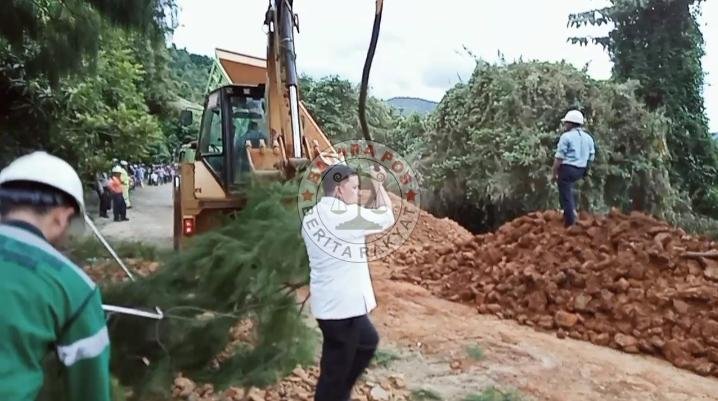 Atas inisiatifnya, beberapa meter dari saluran air disisi jalan berbeda ditimbun sementara untuk melebarkan akses, seperti yang diketahui lebih dari setengah badan jalan amblas saat longsor terjadi.
