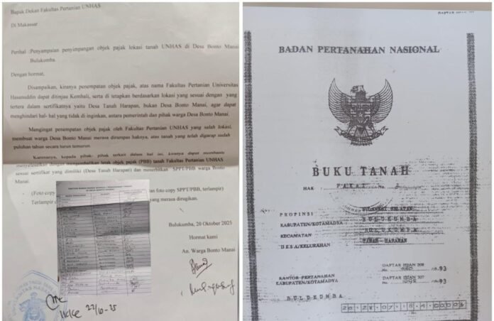 Surat yang dilayangkan warga, juga menilai penempatan objek pajak oleh Fakultas Pertanian salah lokasi. Dampaknya membuat warga desa Bontomanai merasa dirampas haknya atas tanah yang digarap selam puluhan tahun secara turun temurun.