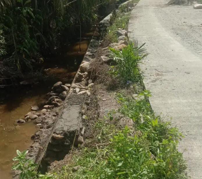Pekerjaan proteksi ini dibangun di kiri kanan bahu jalan, bahkan pekerja pun tidak bisa menjawab saat ditanya status pekerjaan tersebut.