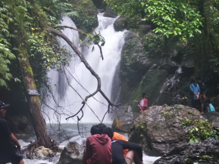 ” Ini objek wisata belum dibuka untuk umum, tapi sudah banyak warga yang biasa datang kalau hari libur, disana memang ada air terjun,” Kata Kades.